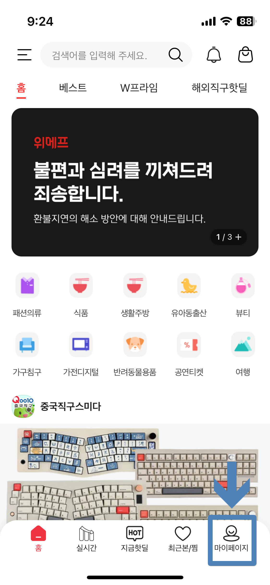 다음으로 모바일에서 위메프 회원탈퇴하는 방법을 알아보겠습니다.