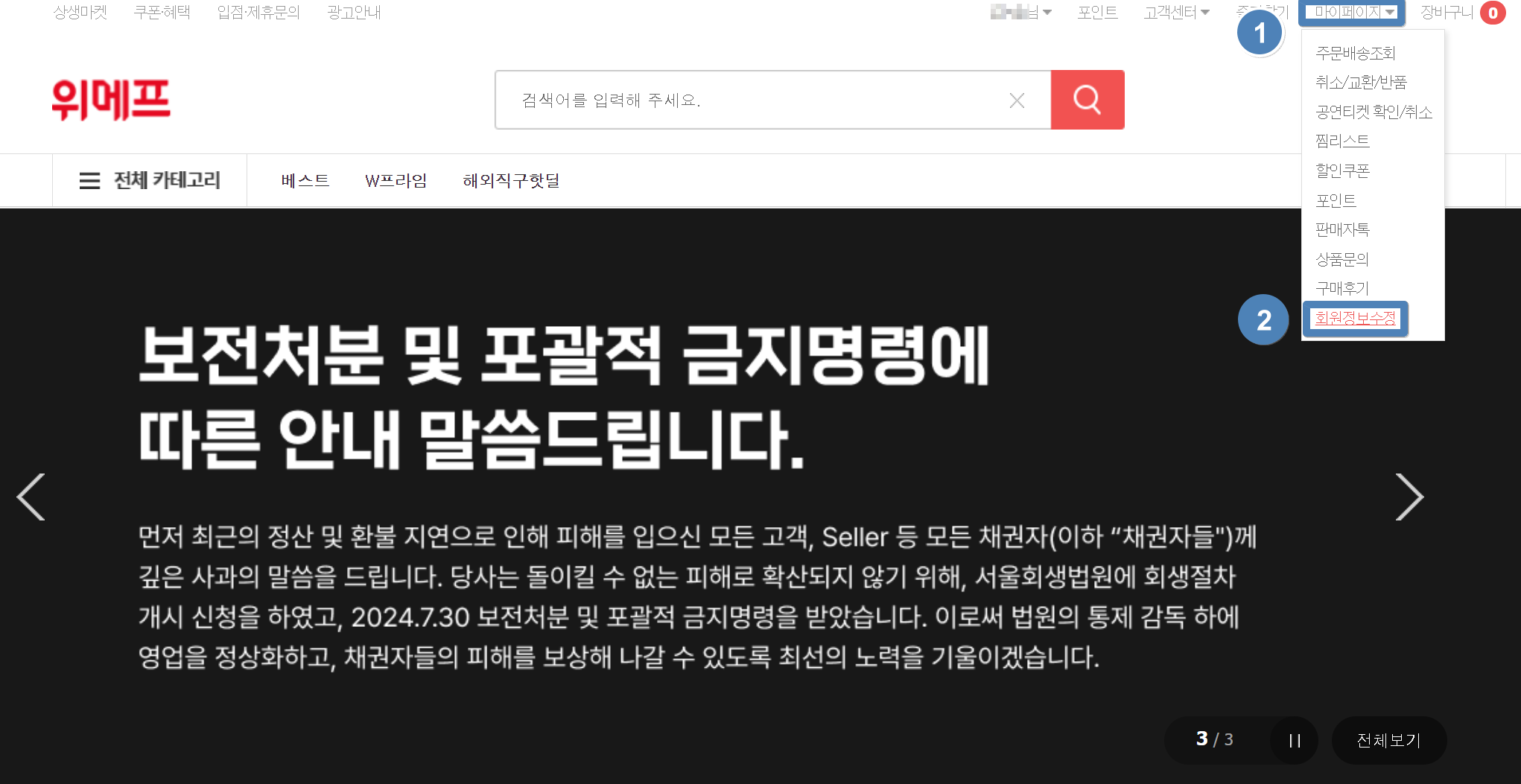 정말 간단!하니 끝까지 보시고 위메프 회원탈퇴 원활히 하시길 바랍니다:)