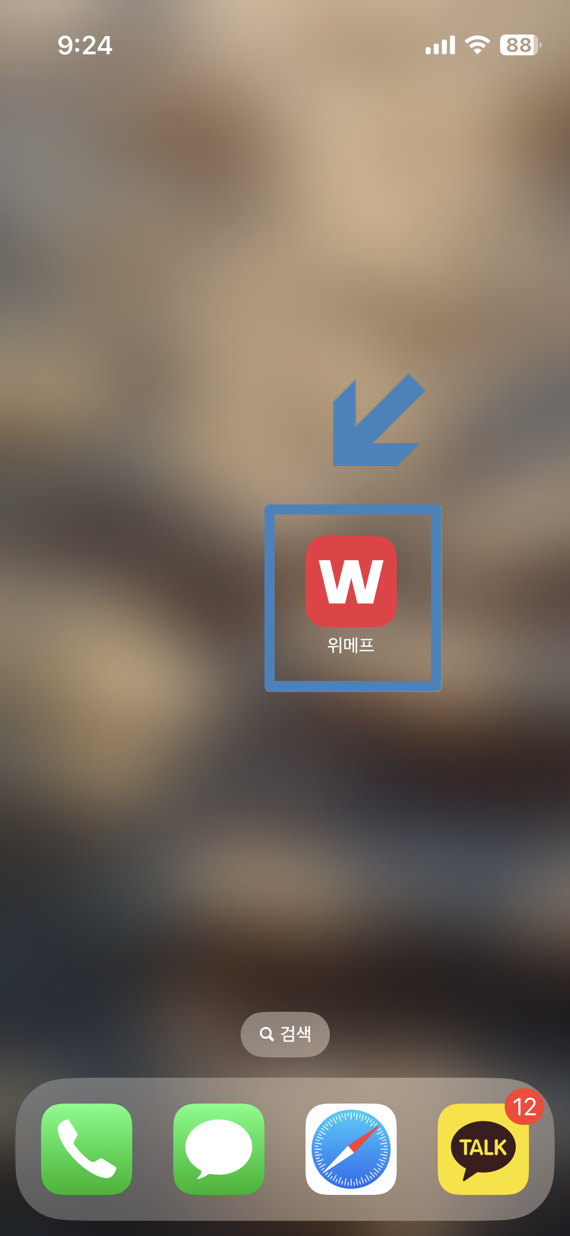 먼저 위메프 앱을 실행하고, 오른쪽 하단의 마이페이지를 눌러 로그인해주세요.